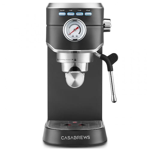 Prepare seu café expresso favorito em casa com a máquina de café CASABREWS com espumador de leite, permitindo que você faça todos os seus cafés favoritos à base de espresso. Desfrute de um latte, cappuccino ou macchiato estilo barista em casa. Aparência em aço inoxidável, elegante e durável, ideal para cozinhas de qualquer tamanho. Esta cafeteira compacta é perfeita para uso doméstico ou no escritório. Sistema de Pressão Profissional de 20 Bar Semiautomática 2 em 1, com bomba italiana profissional de 20 bar e motor potente de 1350 W. Esta máquina de café expresso compacta oferece extração de alta qualidade, resultando em um aroma mais fragrante e rico. O medidor de pressão integrado nesta máquina de cappuccino mostra a pressão exata, ajudando a fazer ajustes de acordo com suas preferências de sabor pessoais. Você pode criar um cappuccino, latte ou flat white em casa ou no escritório com nossa cafeteira espresso. Sistema de Espumação de Leite Nossa cafeteira possui uma poderosa lança de vapor para texturizar leite cremoso e rico e criar arte incrível com espuma de leite para realçar o sabor de seus cafés. Desperte seu barista interior e crie sua própria arte única com espuma de leite. Compacta, Estilosa e Prática O belo e compacto design torna esta máquina de latte adequada para cozinhas de qualquer tamanho. Faça shots de espresso simples ou duplos com uma bela camada de crema em minutos! O tanque de água de 34 oz permite preparar várias xícaras e é removível para facilitar o reabastecimento. Componentes incluídos: Máquina de Café Expresso, Tanque de Água Removível de 34 oz, Filtro de Preparo para Uma Xícara, Filtro de Preparo para Duas Xícaras, Portafiltro, Socador com Colher, Manual de Instruções. Dicas Úteis: Por favor, não faça café imediatamente após vaporizar leite. A máquina deve esfriar primeiro, caso contrário a temperatura e pressão internas serão muito altas, e a máquina entrará em modo de proteção contra superaquecimento. As luzes de 1 xícara ou 2 xícaras piscarão repetidamente. Siga as instruções do guia incluído para resfriar a máquina. Assista mais vídeos instrutivos clicando em Visitar a Loja CASABREWS.