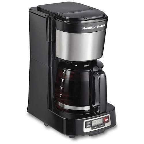 Marca: Hamilton Beach Cor: Preto e Aço Inox Dimensões do Produto: 20,6 x 14,7 x 26,1 cm Recurso Especial: Desligamento automático, Timer, Programável Tipo de Cafeteira: Cafeteira Elétrica de Gotejamento Tipo de Filtro: Papel Estilo: Relógio Programável Usos Específicos: Café Usos Recomendados: Apartamentos e Cozinhas Pequenas Acabamento Externo: Aço Inox Componentes Inclusos: Cafeteira Modo de Operação: Totalmente Automática Nome do Modelo: Hamilton Beach 5 Cup Drip Coffee Maker Número de Itens: 1 Entrada de Interface Humana: Botões Contagem da Unidade: 5 xícaras Número de Identificação Comercial Global: 10040094461117, 00040094461110 Fabricante: Hamilton Beach UPC: 040094461110 Peso do Item: 1,5 kg Número do Modelo do Item: 46111 Marca: Não Informado