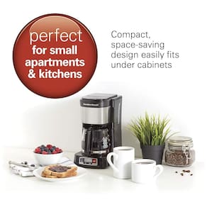 PERFEITO PARA APARTAMENTOS E COZINHAS PEQUENAS: Com seu design compacto e que economiza espaço, a cafeteira programável se encaixa facilmente sob os armários da cozinha. É perfeita para cozinhas menores, apartamentos ou para otimizar o espaço na bancada de qualquer cozinha. Potência: 700 watts.