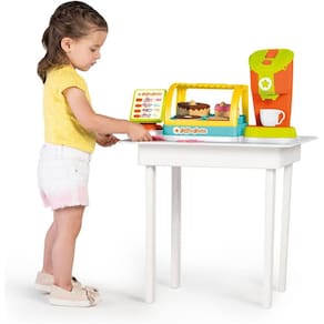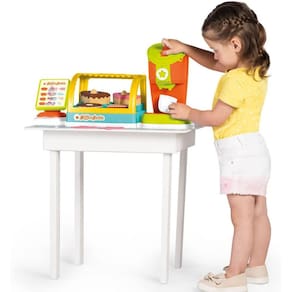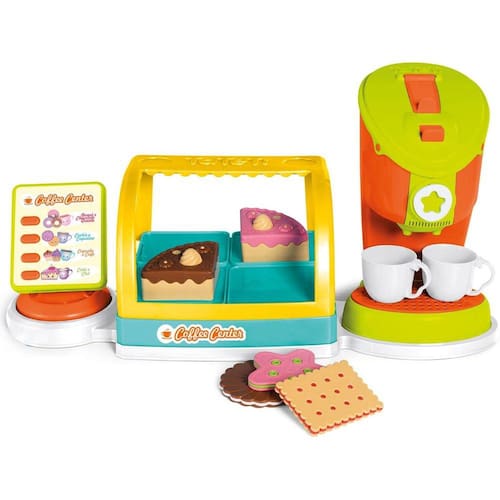 Com a Cafeteira Coffee Center 225 da Tateti, as crianças vão adorar servir deliciosos doces recheados de imaginação acompanhados de um expresso quentinho. Esse item de cozinha é composto por 9 peças, sendo 1 cafeteira com aproximadamente 27,2cm de altura mais 8 acessórios feitos de polipropileno. Os pequenos vão desenvolver habilidades através da interação, e comunicação. Essa cafeteira completa, vem com uma estufa recheada de docinhos e duas xícaras, e um painel que gira 360° para brincar de comprar e vender. E tem mais, para a brincadeira ficar ainda mais divertida, é só abastecer a cafeteira com água e brincar de fazer café expresso. Além disso, tem luz e som como em uma máquina de verdade!