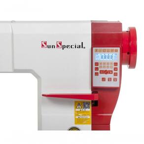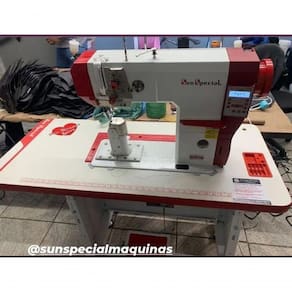 Sun Special Coluna eletrônica 1 agulha transporte triplo Direct Drive. Ideal para couro natural ou sintético, lona, vinil e material emborrachado, cabedal, palmilhas, cintos, bolsas, carteiras, sapatos etc. Corte de Linha , levantador de calcador e posicionador de agulha automático. - Material: Médio e Pesado - Aplicação: Couro - Motor: Direct Drive - Potência do Motor: 550W - Tensão: 220V - Velocidade 3.000RPM - Tipo de Ponto: Fixo - Comnto do Ponto: 0,8 - 4,5 mm - Número de Agulhas: 01 Agulha - Tipo de Agulha: DPx5 - Sistema de Transporte: Triplo - Tipo de Lançadeira: ical Pequena - Altura do Calcador: 07MM - Lubrificação: Automática Acompanha mesa e motor DIRECT