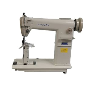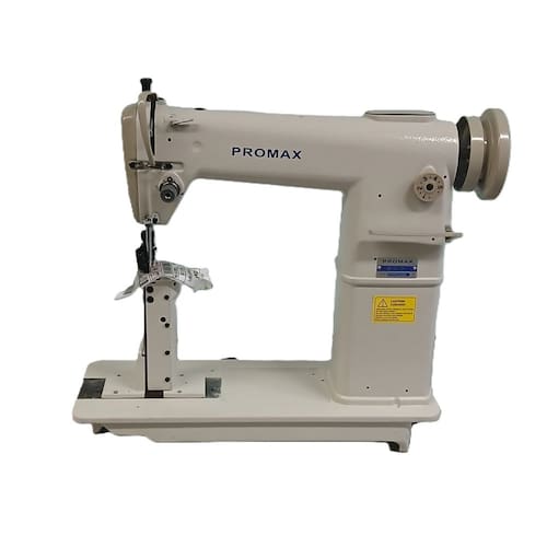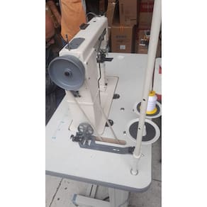 Máquina de Costura Industrial de Coluna para costurar materiais médios e pesados, tais como tecidos, couro, sintéticos etc. Indicada para costurar produtos como sapatos, bolsas, chapéus, sandálias, luvas entre outros. Velocidade máxima da costura: 2000 PPM; Tamanho do Ponto: 5 mm; Agulha: DPx5; Altura máxima do cursor da agulha: 33,4mm; Altura máxima do calcador: 6 a 13mm; Lançadeira: Pequena; Lubrificação: Manual; Quantidade de agulhas: 1. Enviada em 3 volumes: Máquina regulada e revisada, suporte de linhas desmontado; Bancada desmontada (tampo de madeira, pé de ferro, motor importado); Motor Industrial Bivolt 750W servo silencioso.Funções