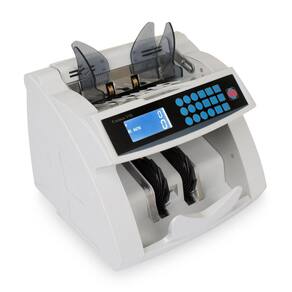A Unimax V3X conta de 1.200 a 1.500 cédulas por minuto, Faz contagem simples, contagens sucessivas e separação por lotes e dispõe de detectores de cédulas falsas e irregulares com sensores ultra violeta, magnético e infra vermelho, detecta cédulas falsas das duas famílias de reais sem a necessidade de separá-las, adequado para fazer contagem de reais, dólar americano e euro.Possui opção que desliga as detecções para contar materias não monetários como cheques, tickets, recibos, documentos etc.A contagem é iniciada no modo automático, basta inserir cédulas na contadora para iniciar a contagem, podendo ser alterado para manual.Design inovador com display de cristal liquido e 19 teclas para selecionar funções e fazer cálculos e somas através do teclado.Modo de inserção das cédulas é horizontal que facilita a contagem pois evita erros de cédulas mal encaixadas.Possui alça para transporte e pode ser ligado em 110V e 220V Bivolt automático .Possui versão com linguagem em português BR e versão em Inglês USA .Principais Funções: Detecta cédulas falsas das duas famílias de Reais, sem necessidade de separá-las, detecta cédulas: duplas, meia cédula, curta e longa, ao detectar um erro ou falsificação, um alarme é emitido junto a um código de erro no painel ; Contagem simples, contagens pelo teclado, contagens sucessivas, soma de contagens sucessivas e separação por lotes; Possui opção que desliga as detecções para contar materiais não monetários, como papel, cheques, recibos, cédulas de polímero, documentos etc., separados ou juntos em um mesmo maço, respeitando as medidas físicas da contadora; Calcula e soma valores monetários através do teclado; Painel composto por um display LCD com 4 dígitos para resultados da contagem global até 9999 e 3 dígitos para contagem parcial e quantidade do lote até 999 ; A contagem é iniciada no modo automático, basta inserir cédulas na contadora para iniciar a contagem, podendo ser alterado para modo manual; Bivolt automática: 110 a 240V com frequência de 60 Hz.Informações Técnicas:Velocidade de Contagem 1.200 cédulas por minuto;Capacidade do alimentador: 300 cédulas;Capacidade do aparador: 200 cédulas;Identificação de cédulas Falsas;Inserção horizontal que evita erros de mal encaixe das cédulas;Tipos de Detecção: UV Ultra violeta / MG Magnético / IR Infra vermelho ;Inicio automático, basta inserir as cédulas para iniciar a contagem;Possui as seguintes opções de display e linguagem:Display de Cristal liquido com teclado em português BR ;Display de Cristal liquido com teclado na cor preta, linguagem em Inglês USA Teclado Numérico com 19 teclas.Voltagem automática de 110 - 240 V;Portátil com peso: Líquido 4,8 kg / Bruto: 5,8 kg;Medidas A x L x P cm : Caixa 28 x 33 x 32 / Máquina 20 x 26 x 25.Garantia de 12 meses contra defeito de fabricação e assistência técnica permanente.