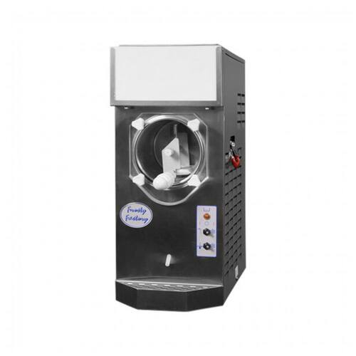 Produza até 115 drinks de 296 ml por hora! Esta máquina da Frosty Factory conta com um cilindro de 3,31 litros e um reservatório de 11,36 litros, sendo ideal para servir uma multidão. Com um interruptor de espera que mantém as misturas refrigeradas durante a noite, a máquina inicia rapidamente, poupando tempo e esforço. Um painel luminoso na parte superior atrai os clientes, destacando suas ofertas mais populares. Com um design compacto, é altamente portátil e economiza espaço no balcão. Perfeita para bares, quiosques ou operações de alimentação que desejam expandir sua seleção de bebidas. Esta unidade é resfriada a ar, fácil de instalar e operar. Requer uma conexão elétrica de 115V e possui dimensões de 53,34 x 53,34 x 66,04 cm.