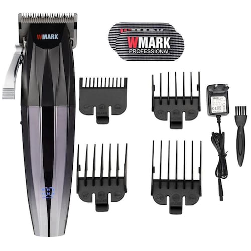 Bateria de Lítio tempo de execução 180 minutos, tempo de carregamento 3 horas ; Lâmina aço inoxidável de alto grau 440C 9CR18 Bateria de lítio: 2500mAh 3 horas de carga totalPara 180 minutos de uso.Alavanca Catracada Ajuste da lamina: 0.5/3.5mm Lamina Fade Lamina movel de Ceramina Lamina em forma de T Ultra Itens Inclusos:1x Maquina Wmark Ng-2221x Oleo lubrificante1x Escova de limpeza1x Carregador4x Pentes guias 3/6/9/12mm 1x Divisor de Cabelo Marca: Wmark