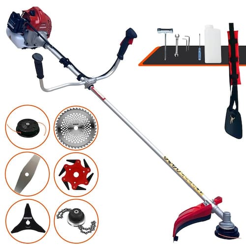 Com guidão ergonômico lateral, permite um alcance amplo e maior mobilidade, capaz de aumentar a produtividade diária. Possui motor 2 tempos á gasolina, de 43 Cilindradas; 1,7HP de potência que proporcionam maior performance e economia na operação. Seu conjunto de acessórios inclui kit de ferramentas, cinto de suporte almofadado, carretel de nylon e lâmina de corte 3 pontas.