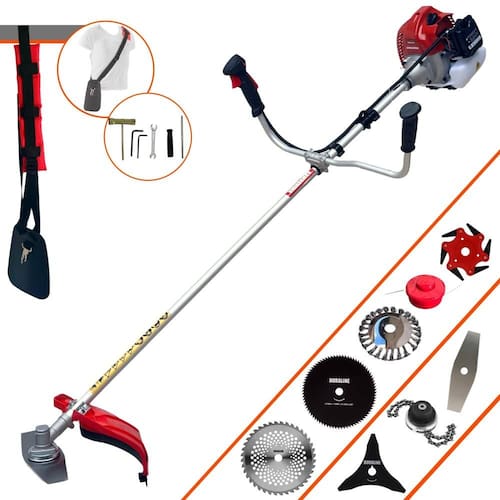 Com guidão ergonômico lateral, permite um alcance amplo e maior mobilidade, capaz de aumentar a produtividade diária. Possui motor 2 tempos á gasolina, de 62 Cilindradas; 3HP de potência que proporcionam maior performance e economia na operação. Seu conjunto de acessórios inclui kit de ferramentas, cinto de suporte almofadado, carretel de nylon e lâmina de corte 3 pontas.