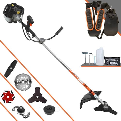Roçadeira Lateral Terra GRH-430 Black À Gasolina 2 Tempos 43cc 1,7HP + Faca 2 Pontas 330mm 2,7mm + Faca 40 Dentes 255mm 2mm + Trimmer + Faca 6 Pontas 250mm
