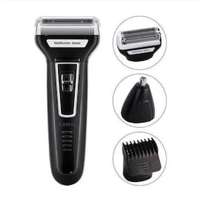 Funciona como máquina de cortar cabelo, barbeador e aparador de pelos,