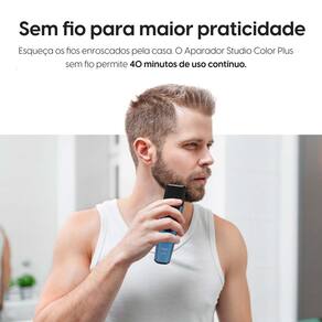 Crie seu estilo com Aparador e Cortador 7 em 1 Corta o cabelo, apara a barba e o corpo Com alta precisão, é ideal para aparar pequenas linhas e detalhes, além dos pelos do rosto, pescoço e corpo. Aparador e Cortador de Cabelo e Barba Studio Color Plus 7 em 1 Características: Corta o cabelo e apara a barba Escolha o tamanho da lâmina pela cor - acompanha 6 pentes Sem fio 7 modos de operação Cabeça destacável e fácil de lavar Carregamento USB Tipo C Suporta até 40 min. em uso sem carregar Sem fio Potência (W): 5 Tensão (V): 127V e 220V (bivolt) Frequência: 60Hz Consumo (KW/ H) 0,005 KW/h Altura (mm): 35 Largura (mm): 160 Profundidade (mm): 35 Peso Líquido (kg): 0,1
