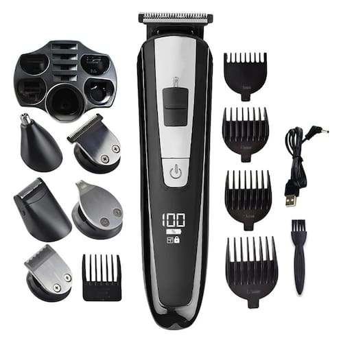 Cabeça de corte T Barber* 1+cabeça de cortador de barbe* 1+cabeça de cortador de cabelo nasal* 1+U Cabeça de cortador de barbeiro* 1+V Cabeça de cortador de barbeiro* 1+cabo de dados USB* 1+manual em inglês* 1+escova de limpeza* 1+4* pente limite+base*1