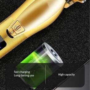 (Display digital) Display digital embutido para mostrar o nível de carga restante, bem como indicadores de status de carregamento e lembrete de lubrificação. Pode ver o status da bateria pelo display LCD e avaliar se ela precisa ser carregada para evitar desligamento durante o corte de cabelo. Além disso, 1 carga completa suporta operação de longo prazo de até 2-3 horas, portanto, não há necessidade de se preocupar em carregar frequentemente o kit de cortadores. O clipper contém uma bateria de íon de lítio de alta capacidade. ·