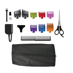 Design sem fio permite movimentos e flexibilidade durante o uso. Até 60 minutos de uso contínuo com uma única carga. Inclui 6 pentes guia coloridos para identificar facilmente o comprimento de corte. Bolsa de armazenamento para manter todos os acessórios organizados. Design moderno em metal e empunhadura ergonômica para manuseio confortável. Motor de longa duração e lâminas removíveis, autoafiáveis e laváveis. Eleve a rotina de cuidados pessoais da sua família com a Máquina de Cortar Cabelo Family Cut Pro Sem Fio.