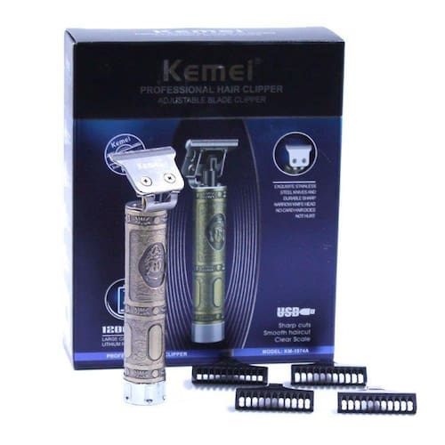 Maquina de cortar cabelo profissional kemei km-1974a A máquina de cortar cabelo profissional kemei km-1974a sem fio tem um corte preciso devido a suas lâminas afiadas e alta velocidade de vibração. É ideal para cortar e criar disfarce degradê no cabelo, fazer pezinho, desenhar a barba. A lâmina em t permite que você faça a barba ou raspe o cabelo livremente em qualquer direção.A mais usada nos salões e nas barbearias pelo seu design moderno em metal desenhado, confortável e portátil. Não causa irritação na pele.Carregue por 3 horas e use por 120 minutos 2 horas .Bateria de lítio recarregável. 18500 lithium-ion 4 pentes diferentes. 1mm/2mm/3mm e 5mm Indicação de carga.Botão on/off. Dimensões da embalagem: 15,5 x 19 x 5,5cm c x a x l Dimensões do produto: 2,5 x 14 x 2,5cm c x a x l Especificações técnicasTensão de entrada: 110-240vVoltagem de saída: dc5vFrequência: 50/60hzPotência: 5w Itens inclusos:- 1 máquina.- 1 carregador de bateria.- 1 bateria extra.- 4 pentes. 1mm/2mm/3mm e 5mm - 1 óleo para lubrificação e manutenção.- 1 escova para limpeza.- 1 manual em português. Registro anvisa n80700620001 Comercial sd eletro-eletrônicos e utilidades ltda