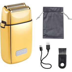 Máquina De Cortar Cabelo Shaver Barbeador Kemei Tx1 Máquina De Cortar Cabelo Shaver Barbeador Kemei Tx1Detalhes do produto:Marca:kemeiCaracterísticas especiais: Wet, DryFonte de alimentação: Alimentado por bateriaPeso do produto: 345 GramasCor :DouradoMaterial da lâmina: Titânio -barbear profissional e preciso: lâminas de barbear escalonadas, folha de titânio flutuante larga para um barbear mais eficiente. Para um barbear ultra próximo ao redor do pescoço, rosto e linha do cabelo. -design totalmente metálico: este é um barbeador todo em metal com um poderoso motor rotativo. Este barbeador masculino não arranha peles sensíveis. O design molhado ou seco significa que você pode raspar com gel ou espuma para encontrar seu melhor conforto. -aparador careca: Seu cabelo e pelo facial crescem em vários ângulos diferentes, então projetamos papéis com barbear multidirecional sem lacuna--bateria grande: A bateria de íon de lítio de 1400 mah oferece 120 minutos de tempo de funcionamento para até 2 horas de carga, a porta Tipo-C é conveniente. -bom presente: Melhores presentes para homens/pai/maridos/namorados para Ação de Graças, Natal, Ano Novo e outros feriados. Deixe sua família parecer ótima e economize dinheiro. Dica: não funciona quando é recebida, tente cobrar------------------------------------------------------------------------------------------Descrição do produtoEspecificação:Nome da marca: kemeiCor: prata e ouroTensão de entrada: 3,7-5VPotência: 5WTempo de carga: 2 horasTempo de funcionamento: 120 minutosBateria: Bateria li-on 1400mAhConteúdo da embalagem:1 x máquina1 x cabo USB tipo-C1 x bolsa de armazenamento1 x pincelEste barbeador ultra-poderoso oferece uma estética atraente, além de precisão e função de alto nível. A folha dourada hipoalergênica permite que até mesmo o indivíduo mais sensível use o Finale sem solavancos, pelos encravados ou irritação da pele. A bateria de lítio mantém o motor rotativo funcionando em velocidade total por até 120 minutos por cargaPara sua conveniência, o kemei Finale vem com todos os acessórios necessários para o uso. O pacote inclui o barbeador, capa de alumínio, cabo USB, bolsa de armazenamento, escova de limpeza.Homens cuja pele é sensível ou facilmente irritados por barbear, ou que sofrem de alergia à pele, devem testar uma seção na perna ou no braço antes de usar o barbeador.