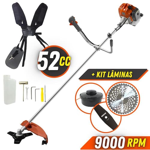 ??A Roçadeira á Gasolina Tekna RL520ACN-TK é ideal para corte ou manutenção de gramados, jardins e vegetação em geral, é adequada para uso frequente, com partida fácil, oferecendo muita força e praticidade ao operador. A vantagem da roçadeira é que pode ser usada em locais irregulares, morros, buracos, florestas, entre outro com dificuldade de acesso. Produto de alta qualidade, desempenho e durabilidade.?? É uma roçadeira adaptável que pode se tornar multifuncional, podendo ser adaptado diversos modelos de acessórios, pois possui tubo de encaixe universal 28mm, e encaixe 25,4mm (1'') para Lâminas e Discos, ampliando ainda a sua diversidade de cortes. Realizando o trabalho de forma ágil e confortável, com cinto duplo almofadado que acompanha o equipamento, proporcionando maior conforto, ergonomia e segurança ao operador. Com guidão ergonômico lateral, permite um alcance amplo e maior mobilidade, capaz de aumentar a produtividade diária. Possui motor 2 tempos á gasolina, de 51,6 Cilindradas (52cc) 9.000 de rotação 2,0 HP de potência que proporcionam maior performance e economia na operação. ??Operador, instrução recomendada para a utilização da máquina: Verifique a montagem e estado dos componentes da roçadeira; Assegure-se de estar utilizando todos os equipamentos de segurança; Leia o manual para saber como dar a partida em uma roçadeira; Observe sempre a proporção da mistura do óleo conforme recomendado pelo fabricante, proporção de mistura (25:1), além de manter o bom funcionamento você pode prevenir futuras falhas. Segure a roçadeira com ambas as mãos durante a operação; Mantenha todas as partes de seu corpo longe da roçadeira durante sua operação; Sempre desligue o motor da roçadeira antes de deixá-la desassistida; Transporte sempre a roçadeira com o motor desligado; Proceda com a manutenção e limpeza da roçadeira. Lembrando que se não cumprir as instruções de segurança pode resultar em lesões graves. ??