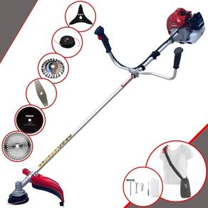 Com guidão ergonômico lateral, permite um alcance amplo e maior mobilidade, capaz de aumentar a produtividade diária. Possui motor 2 tempos á gasolina, de 52 Cilindradas; 2,5HP de potência que proporcionam maior performance e economia na operação. Seu conjunto de acessórios inclui kit de ferramentas, cinto de suporte almofadado, carretel de nylon e lâmina de corte 3 pontas.