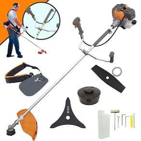 Com guidão ergonômico lateral, permite um alcance amplo e maior mobilidade, capaz de aumentar a produtividade diária. Possui motor 2 tempos á gasolina, de 42,7 Cilindradas (43cc) 10.000 de rotação 1,7HP de potência que proporcionam maior performance e economia na operação.Seu conjunto de acessórios inclui kit de ferramentas, cinto de sustentação, carretel de nylon e lâmina de corte 3 pontas.