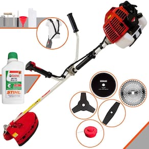 Roçadeira Lateral Kawashima KW43-L À Gasolina 2T 43cc 1,7HP Com Lâmina 3 Pontas + Faca 2 Pontas 330mm + Faca 40 Dentes 255mm + Faca 80 Dentes 255mm + Escova Rotativa 38 Cerdas 200mm + Óleo Castrol Stihl 500ml