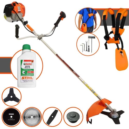 Roçadeira Lateral Vulcan VR620H À Gasolina2 Tempos 62cc 3HP + Faca 2 Pontas 330mm + Faca 40 Dentes 255mm + Faca 80 Dentes 255mm + Óleo Castrol Stihl 500ml