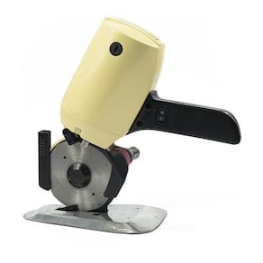 Máquina de Corte de tecidos YAMATA, sistema de corte com disco de 4' (Aprox 10 cm) amolador acoplado a máquina, guia de segurnaça e corte, rodízios para deslizar a máquina, tem capacidade para cortar tecidos diversos, entre eles, malha, lã, jeans, couro e demais materiais.