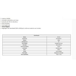 - Proteção frontal de aço com regulagem de altura - Amperagem: 10 a - Voltagem: 220V Acessórios Inclusos: