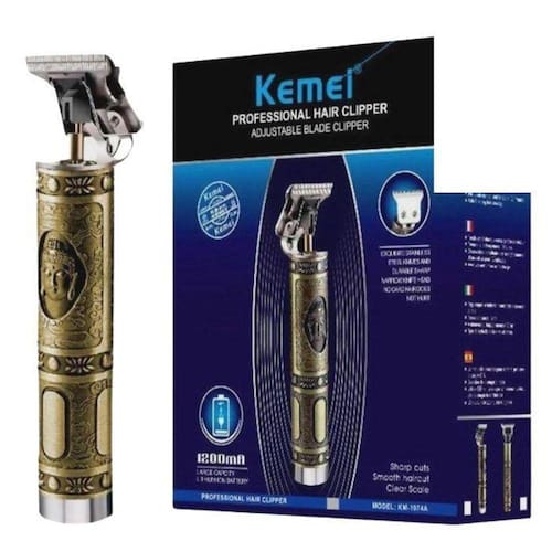 Máquina de corte e acabamento profissional kemei 1974a metal Chegou para revolucionar a forma de fazer um corte ou acabamento no cabelo. Com dimensões pequenas é muito prática para que gosta de finalizar um corte de cabelo. Com um corte rápido e preciso, você vai se impressionar com tudo que poderá fazer com esta maquina que agora pode ser sua por um preço até 3 vezes menor que as maquinas parecidas vendidas aqui no brasil. Com certeza você vai aprovar este novo lançamento kemei. Tem um poderoso motor de longa duração, uma faca afiada e eficaz Bateria interna recarregável e ecológica de cobalto de lítio licoo2 , está disponível para trabalhar por cerca de 120 minutos depois de totalmente carregada Vem com cabo de carregamento usb e outros acessórios de corte detalhes Marca: kemei Modelo: km-1974a Cor: gold Tamanho: 14,5 x 4 cm Peso líquido: 169 g Potência: 5w Tensão: 110-240v Fonte de alimentação: bateria recarregável Tempo de carregamento: 3 horas O pacote inclui: Aparador de cabelo x 1; Pentes x 3 Pincel x 1; Bateria extra x 1. Carregador x 1. Registro anvisa n80700620001