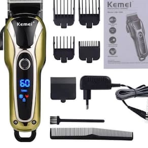 Kemei desenvolveu o modelo km 1990 uma maquina de corte, com motor potente com duas velocidades ajustável, adequado para todos os tipos de corte de cabelo. Uma conveniente alavanca da lâmina para ajustar o comprimento da lâmina, proporcionando um desempenho mais suave e mais preciso em seu cabelo. Há uma tela de lcd sobre o corpo, que pode exibir a energia restante intuitiva. Lâmina de aço inoxidável para aparar o cabelo rapidamente e com precisão, nenhum cabelo ficar preso e não ferir a sua pele. Equipado com 4 diferentes comprimento limite combs 3mm, 6mm, 10mm, 13mm ,você pode facilmente controlar o comprimento do cabelo que você deseja cortar e criar vários estilos de cabelo. Cabo e sem fio de dupla utilização, não mais se preocupar com nenhuma eletricidade, mais conveniente. Após 3 horas de carga completa, ele pode ser utilizado continuamente por 120 minutos. Para um bom desempenho do equipamento após cada trabalho, passe a escova de limpeza e se necessário lubrifique a lâmina isso deixa o equipamento com alto rendimento. Especificação: