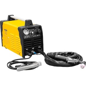 1 Máquina de corte plasma, acompanha: 1 tocha plasma, 1 conjunto garra obra (cabo com engate rápido de 9 mm e garra obra) e 1 mangueira de ar