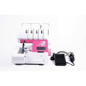 4 Fios, Permite costurar todo tipo de tecido, Guias coloridas para facilitar a passagem da linha, Cortador de linha integrado, Ponto cadeia e bainha enrolada (Fru Fru), Suporte para 4 Cones de linhas, Seletor de largura do corte. Permite costurar com 1 ou 2 agulhas.
