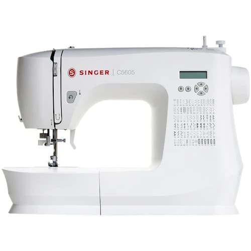 MÁQUINA DE COSTURA ELETÔNICA SINGER C5605 80 PONTOS COM 6 CASAS DE BOTÃO Costure e customize suas roupas no conforto de casa com a Máquina Singer C5605. São 80 pontos a disposição com até 180 opções de aplicação diferentes para você aproveitar!