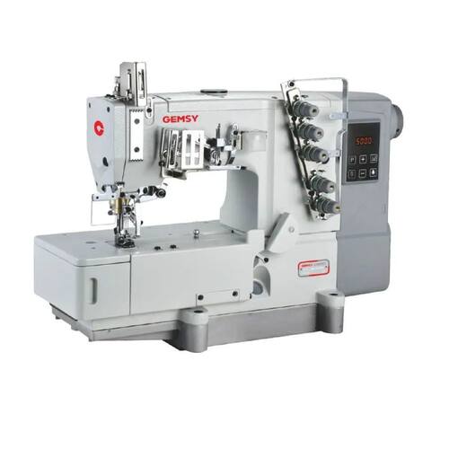 Galoneira Industrial de base plana aberta 3 agulhas com motor eletrônico direct drive, muito mais silencioso e econômico. A Gemsy 5501AE-01 ostenta um motor de acionamento direto com economia de energia e um came de rosqueamento externo inovador, esta máquina redefine a precisão e a eficiência. Transição perfeita entre as funções de costura de cobertura, costura de rolo, renda, faixa elástica e bainha. O motor direct drive quando comparado aos motores convencionais chega a economizar até 70% de energia, além de garantir maior agilidade na partida da máquina por estar conectado diretamente no eixo principal da máquina e não utilizar correia. A função automática de parada de agulha em cima ou embaixo, proporciona um grande aumento da produtividade pois dispensa o manuseio do volante pelo operador.