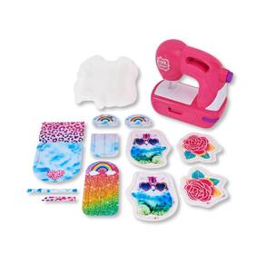 Inclui: 1 máquina de costura fresca para costura, 5 projetos pré-cortados para costurar, 1 saco de enchimento, 1 livro de brincadeiras