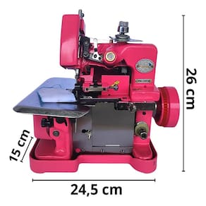 Máquina de costura overlock semi industrial 3 fios com motor acoplado. Peças em aço (incluindo peças internas). Faz acabamento em qualquer tecido. Potência: 150W. Velocidade máxima: 3000 Rpm. Espessura máxima para o tecido: 4mm. Comprimento do ponto: 3,5mm. Tipo da agulha: DC x 1 - 90/14 MY1023A. Ajuste de tensão da linha: Sim. Tipo de tecnologia: Overlock.Funções