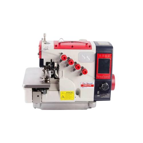 Máquina de Costura Overloque Ponto Cadeia Eletrônica com embutidor de Correntinha Automático com Control Box acoplado ao cabeçote SS94PD-Bk-At-Sp-Br