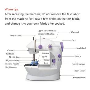 Sobre o Produto: 2 linhas de design: design de costura, tem linha de fundo e linha de superfície. Proporciona uma costura estável e de alta qualidade para todos os seus projetos, pode costurar em qualquer tecido. Velocidade Dupla: Baixa ou alta velocidade, a velocidade pode ser ajustada para que novatos, crianças ou um mestre possam operá-la facilmente. Interruptor duplo: Pode escolher o interruptor de mão ou pedal. Por favor, certifique-se de ler as instruções antes de usar a máquina de costura, a operação errada fará com que o fio fique preso, com que a agulha quebre ou até mesmo fazer com que o produto não funcione.