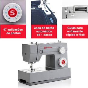 A Máquina de Costura Facilita Pró 4423 é uma máquina de costura mecânica mais forte e mais rápida, ideal para quem busca desempenho, durabilidade e precisão. Com estrutura interna de metal, oferece maior estabilidade e resistência, garantindo costuras impecáveis em diversos tipos de tecidos.Com 23 pontos utilitários, essenciais, decorativos e flexíveis, essa máquina permite explorar sua criatividade e realizar acabamentos profissionais. O caseador de 1 passo facilita a confecção de casas de botão com precisão e rapidez. Além disso, a ajuste da largura e comprimento do ponto proporciona maior controle e personalização para cada costura. Sua velocidade de até 1.100 pontos por minuto torna a costura mais ágil e eficiente. O rebaixador dos dentes possibilita bordados livres e quilting, enquanto o braço livre facilita costuras em mangas, barras e punhos. A iluminação em LED oferece mais clareza na área de trabalho, garantindo maior conforto visual. Principais Características:- 23 pontos: utilitários, essenciais, decorativos e flexíveis- Caseador de 1 passo: faz casas de botão com perfeição- Ajuste do comprimento do ponto: até 4mm- Ajuste da largura do ponto: até 6mm- Prega botões de 2 e 4 furos- Rebaixador dos dentes: ideal para bordado livre e quilting- Braço livre: facilita costuras tubulares como mangas e barras- Ajuste manual da pressão da sapatilha para diferentes tipos de tecido- Ajuste da posição da agulha: direita, centro e esquerda- Iluminação em LED: melhor visibilidade na área de costura- Base em aço inox: facilita o deslize dos tecidos, inclusive plásticos- Estrutura interna de metal: mais estabilidade e durabilidade - Alta velocidade: até 1.100 pontos por minuto