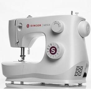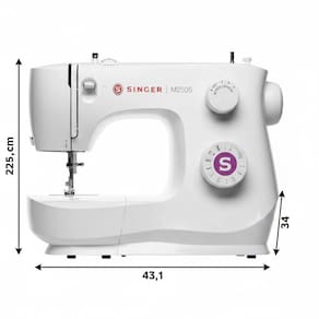 Máquina de Costura Mecânica Singer M2505 com 10 pontos de costura, ideal para uso doméstico, reparos, ajustes, artesanato e costura criativa. Possui braço livre, passador de linha e sistema de bobina Drop & Sew.Alça retrátil