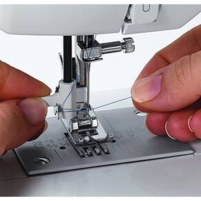 - Rosca automática de agulha: a maior economia de tempo da costura. Enfia facilmente a agulha sem frustração ou cansaço visual.