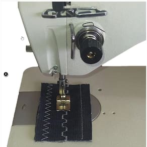 Máquina de costura Zigue Zague Semi Industrial. Faz zig zag e costura reta em tecidos leves até meio pesados. Lubrificação Manual. Velocidade 2500 ppm. Largura do Zig Zag 9 mm. Comprimento do ponto 5mm. Completa com mesa fórmica, pé de ferro e motor.Alça retrátil