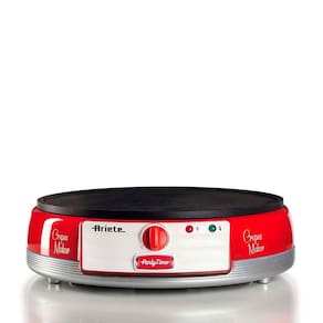 Apresentamos a Máquina de Crepe retrô vermelha com design exclusivo dos anos 50. Leve para a mesa a alegria dos crepes caseiros com a nova Party Time da Ariete. Este produto é muito simples de usar para preparar deliciosos petiscos.