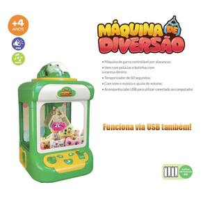 Características: Máquina de garra controlável por alavancas. Vem com pelúcias e bolinhas com Surpresa dentro. Temporizador de 60 segundos. Com sons e música e ajuste de volume. Acompanha cabo usb para utilizar conectado ao computador.