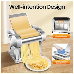 A máquina de fazer massas elétrica da PIAOCAIYIN é feita de aço inoxidável de alta qualidade, resistente ao desgaste e à ferrugem. Equipada com dispositivo de proteção contra superaquecimento automático, garante operação segura e estável. Com um motor potente de 135W, oferece eficiência na produção de diversos pratos de massa saborosos. Possui ajuste de espessura com 6 opções, permitindo fazer massas de 1,5mm a 4mm de largura. Fácil de usar e limpar, ideal para preparar deliciosas massas em casa ou em estabelecimentos comerciais.