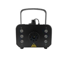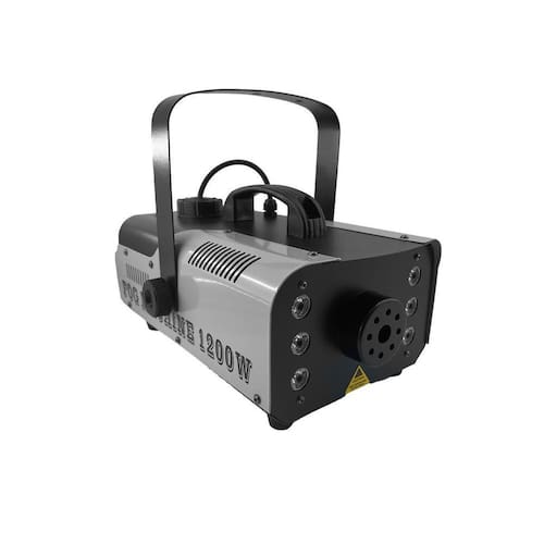 Máquina de fumaça fog machine de 1200w com iluminação de 6 leds rgb e 1 watt de potência em cada led mais controle remoto sem fio e com fio.