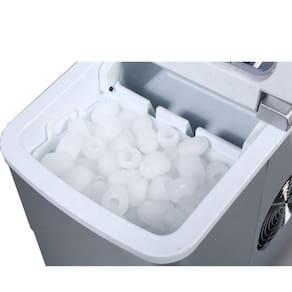 Máquina de gelo com capacidade de produção de 12kg/24h, reservatório de água de 2.0L, armazena 0.7kg de gelo, produz 9 cubos por ciclo em 8-15 minutos. Utiliza gás R600a. Gabinete em plástico.Capacidade de armazenamento de gelo