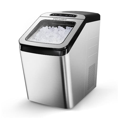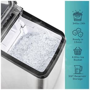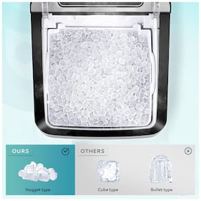 Máquina de gelo automática tipo Nugget Ice, com capacidade de 2.7L, construção em aço inoxidável com painel de controle, 170W de potência, voltagem 110V. Possui recarga de água automática ou manual e função de limpeza automática.Capacidade de armazenamento de gelo