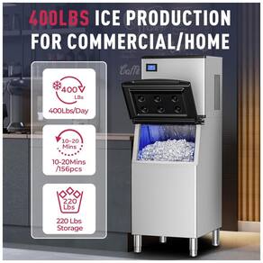 A Máquina de Gelo Comercial ICYGLEE produz até 400 lbs (181 kg) de cubos de gelo por dia, com bin de armazenamento para 220 lbs (100 kg). Equipada com compressor de alta performance, gera 156 cubos cheios em 10-20 minutos, ideal para demandas intensas em restaurantes, bares, cafés e negócios. Painel LCD intuitivo permite programação de 1-24 horas, alertas de gelo cheio e falta de água, contagem regressiva de produção, exibição de temperatura e ajuste de tamanho dos cubos para personalização técnica.