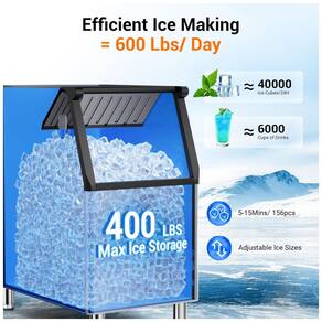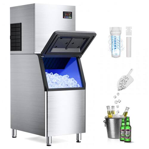 Ficha Técnica Especificação Detalhes Marca QAUSOU Modelo Commercial Ice Maker Material Aço inoxidável Capacidade de produção 272 kg de gelo por dia Bin de armazenamento 181 kg Produção por ciclo 156 cubos em 5-15 minutos Ajustes de gelo 30 espessuras ajustáveis Voltagem 110 V Refrigerante R290a Dimensões (P x L x A) 84 cm x 56,5 cm x 147,5 cm Altura 147,5 cm Compressor Cobre puro com recirculação Isolamento Tripla camada (10 horas retenção) Filtro PP cotton 18 mm (0,5 µm) Painel LCD com 5 botões (temporizador, autolimpeza) Funções Autolimpeza, temporizador, descongelamento Componentes inclusos Máquina de gelo comercial Cor Prata Peso 150 kg Marca: Não Informado