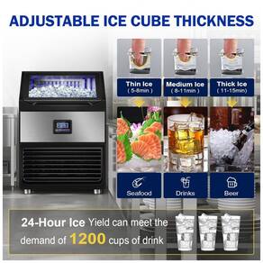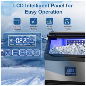 A máquina de gelo comercial RAPSUAR produz até 159 kg de gelo por 24 horas, com bin de armazenamento de 34 kg, ideal para uso residencial, bares, escritórios, restaurantes e ambientes comerciais. Gera 108 cubos de gelo em apenas 8 minutos graças ao compressor potente de 750W, que garante resfriamento rápido e operação contínua. O painel LCD intuitivo permite ajuste preciso do tempo de produção e espessura dos cubos, com sistema de diagnóstico integrado para identificação rápida de falhas e função de autolimpeza para manutenção simplificada.