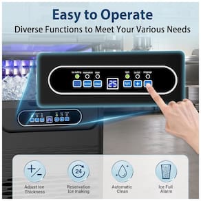 A Máquina de Gelo Comercial RAPSUAR utiliza um compressor de 350W de alta eficiência para produzir 36 cubos de gelo claros e sólidos a cada 9-15 minutos, alcançando até 45 kg de gelo por dia. Equipada com opções duplas de entrada de água, suporta conexão direta à torneira ou garrafões, incluindo filtro de água integrado que remove impurezas para garantir gelo cristalino em cada ciclo. O painel de controle LCD intuitivo permite ajustes precisos de tempo de produção e espessura dos cubos via botões (+) e (-), com funções automatizadas de limpeza, descongelamento, agendamento e alertas de falhas para operação simplificada.